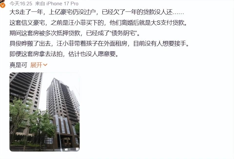 再看看大S生前那套房产至今未过户,说好的不争遗产,但所有动作却滴水不漏地在计算着后路。