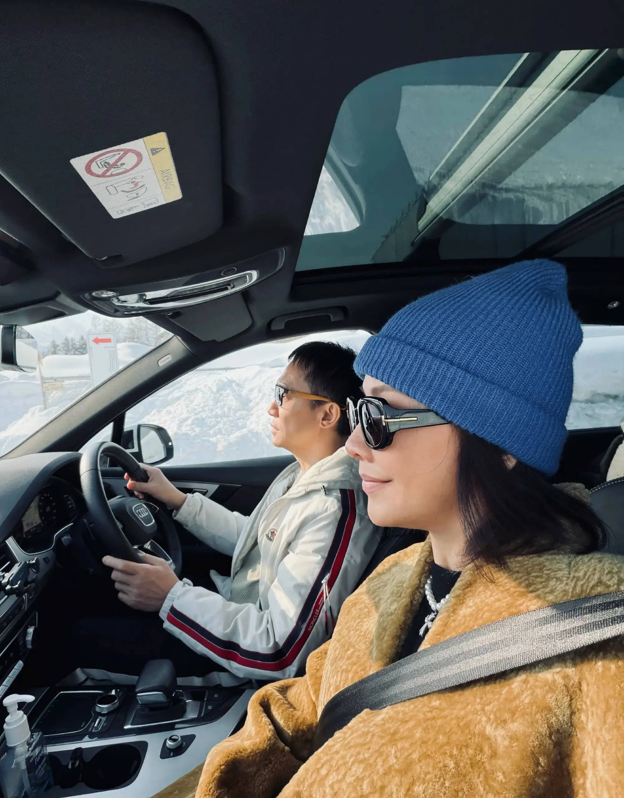 照片中,梁朝伟正在开车,刘嘉玲坐在副驾驶位置上与老公自拍合影,她露出幸福笑容,心情大好。