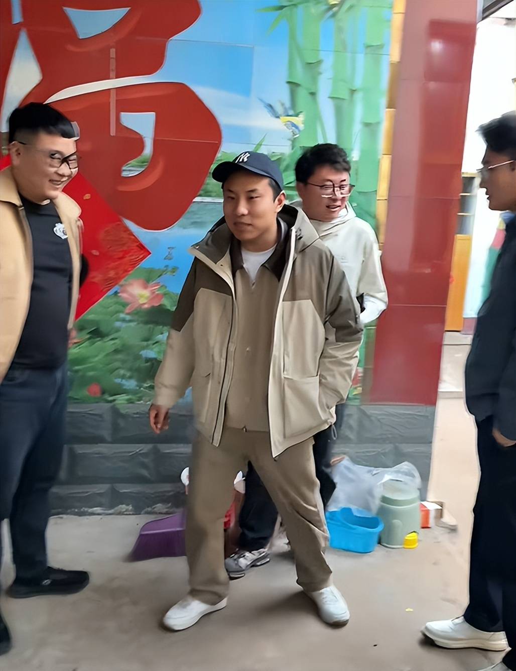 从穿搭看,徐志胜以简单休闲为主,戴着帽子,似乎也是刚睡醒就起床去拜年了。