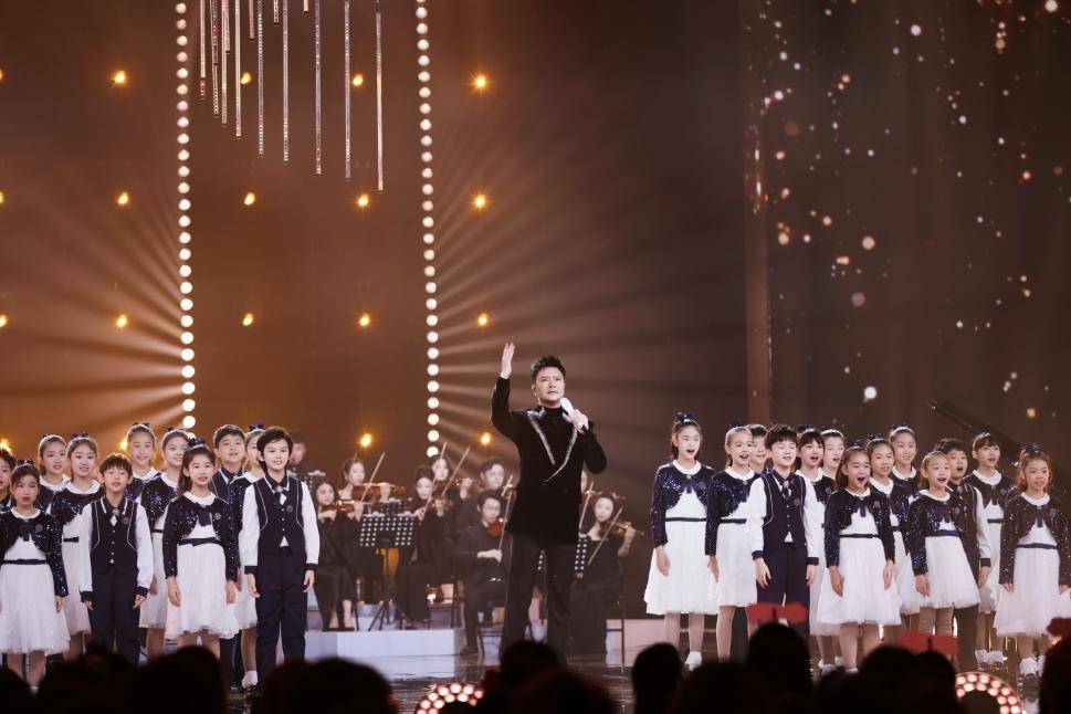 此次江苏卫视春晚,汤非以“学院派实力”重新诠释《是我,也是我们》。当交响乐团的磅礴弦乐与童声合唱团的清澈和声交织,他以标志性的“汤式唱腔”——细腻的行腔韵字与大气沉稳的台风,将歌曲中“你埋头往前走,前路会有星光”的温暖信念娓娓道来。