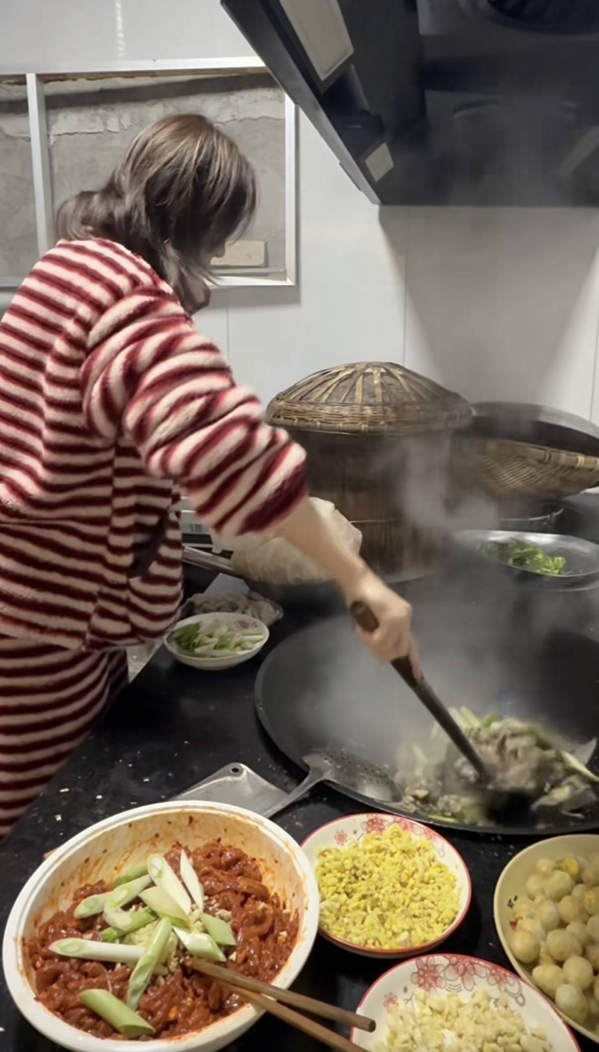 只能说金喜太贤惠了,年夜饭几乎都是她一个人张罗安排的。从买食材、到洗菜摘菜、切菜,再到下锅炒菜,每一个步骤都如同行云流水,非常顺利。