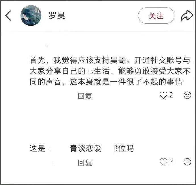 面对外界的好奇与质疑,他以一种带点幽默的方式回应,自称是罗昊的妹妹罗昊子,仿佛用这种略带戏谑的称呼来消解身份争议。他还主动点赞那些写着美女优雅女人等赞美性的评论,甚至连调侃他像大婶的留言也没有刻意回避,似乎在用一种包容姿态面对各种声音。