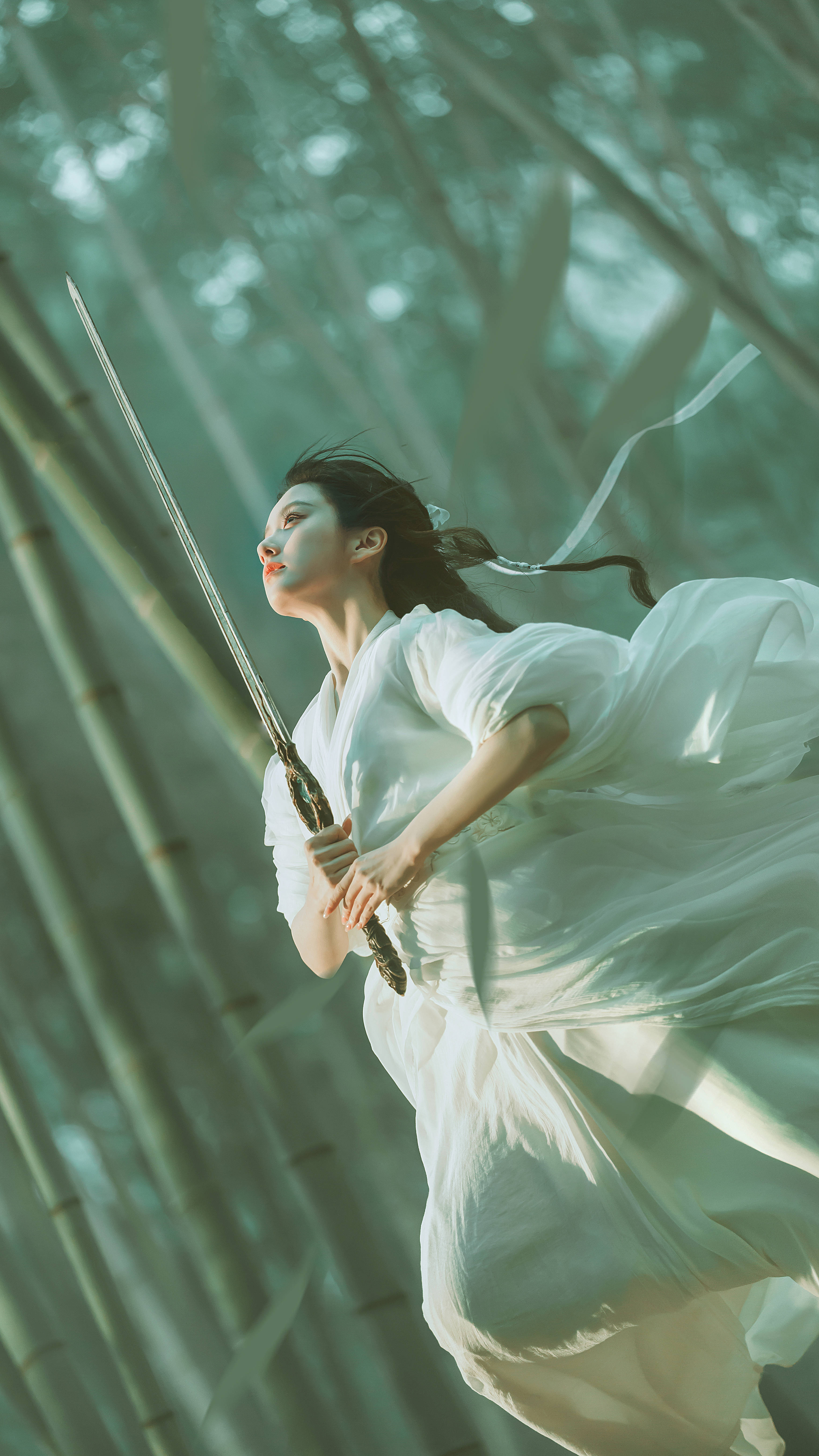 搜狐娱乐讯 2月22日,包上恩在社交平台分享一组侠女风写真,照片里的她一袭白衣,竹林舞剑,身姿翩跹。