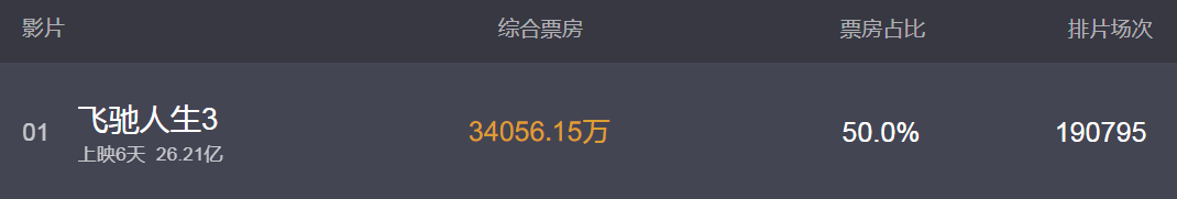 《飞驰人生》的票房是17.28亿;《飞驰人生2》票房是33.61亿,而今年网友们都觉得,《飞驰人生3》有望拿下50亿票房,给这个赛车IP凑个100亿票房整数。能否实现这个目标,就让我们拭目以待。