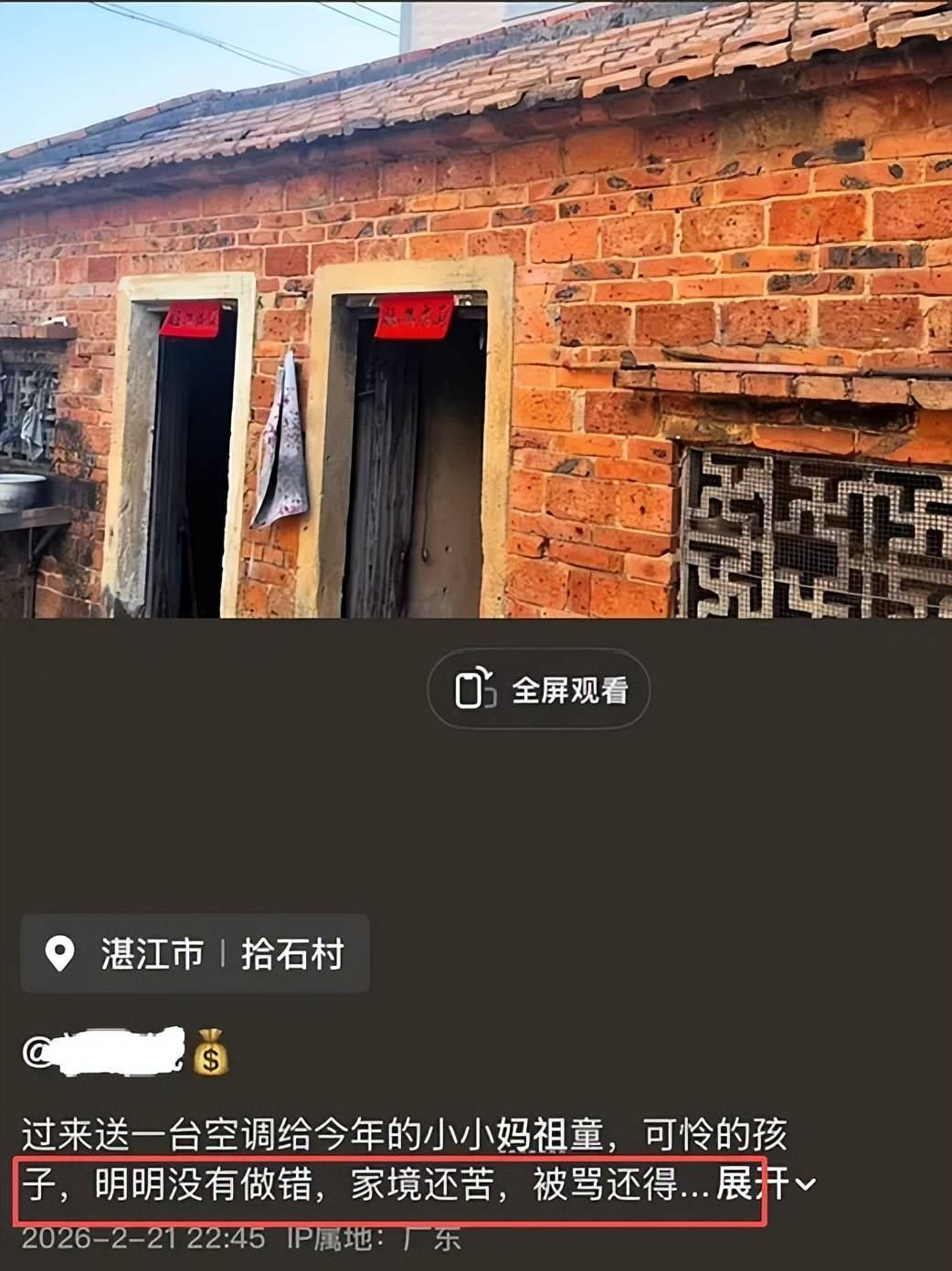 还有村民晒出了10岁女童的住宅,是简陋的一层砖瓦房,门窗及墙壁都没有做任何装饰,门是木门,墙壁上被熏得黑黑的,原始朴素。发布者IP定位在村里,称10岁女童并没有做错什么却被骂很心疼,还表示女童家境苦。目前该内容已被删除,真假有待证实。