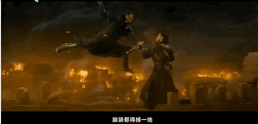 城墙对决则将空间压迫感拉到极致,狭窄的城墙上,兵刃相交的火花四溅,脚下是燃烧的城池,恰是两人内心纠缠的绝佳隐喻。