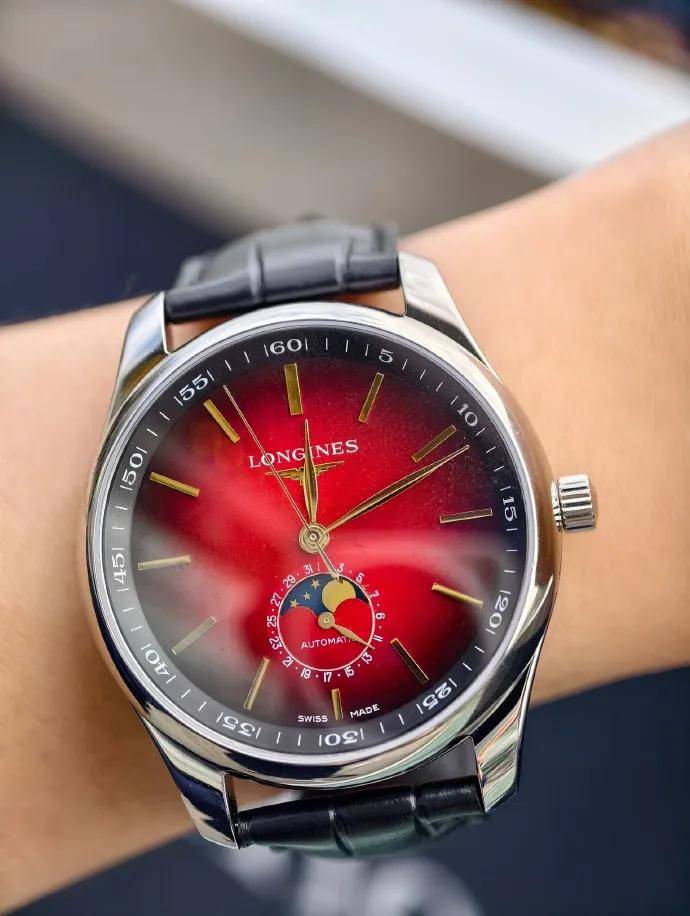 表盘采用了特别定制的渐变赤焰红色太阳纹,营造出旭日初升的绝妙意境,非常契合2026“火马年”的主题。