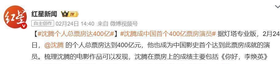 原创 票房破400亿成中国影史第一人却颗粒无收?47岁沈腾终步入陈佩斯后尘,陈道明没说错
