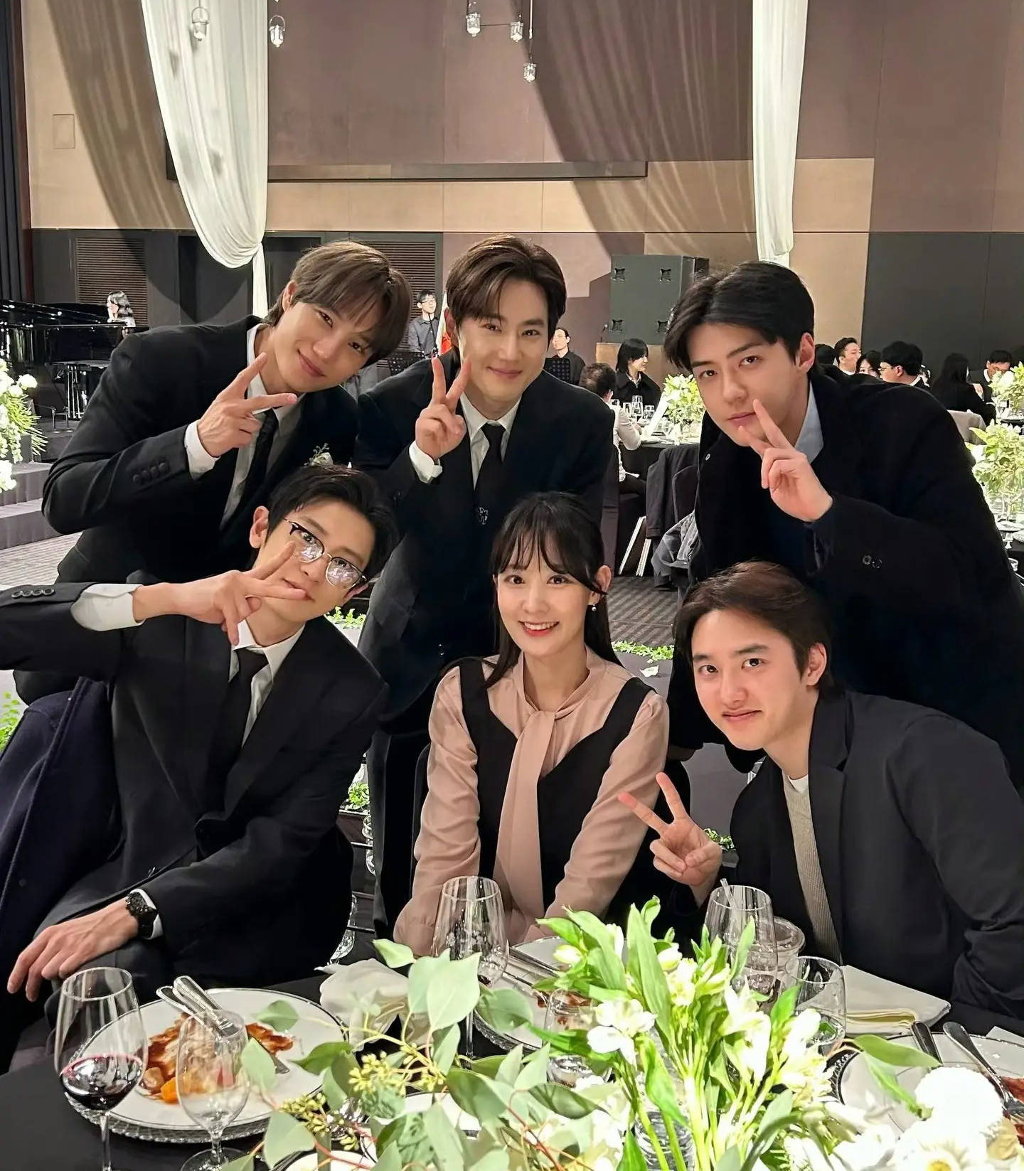 EXO成员们均穿黑西装帅气有型。
