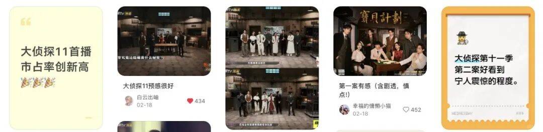 首播云合市占率39.7%断层领跑、微博开分8.5、小红书随处可见好评笔记,这是最近热播《大侦探11》交上的最新市场答卷。对春节后冷若冰霜的综艺大盘而言,这档长寿节目的高能热度令综艺人们颇感欣慰。