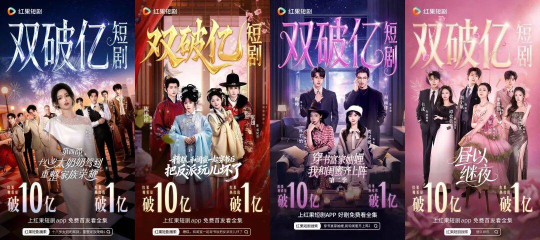 在春节假期期间,红果诞生了《穿书富家妯娌3》《糟糕,和闺蜜一起穿书后把反派玩坏了》《昼以继夜》以及《十八岁太奶奶驾到4》四部播放量与热度值“双破亿”的现象级短剧。