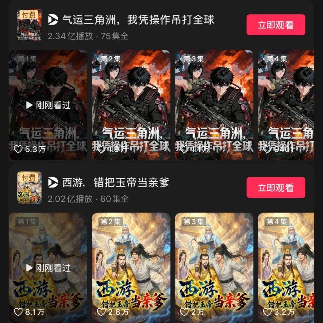 《气运三角洲,我凭操作吊打全球》是典型样本。该剧融合了“国运+穿越+游戏IP”等高黏性元素,截至目前抖音累计播放超过2.34亿。