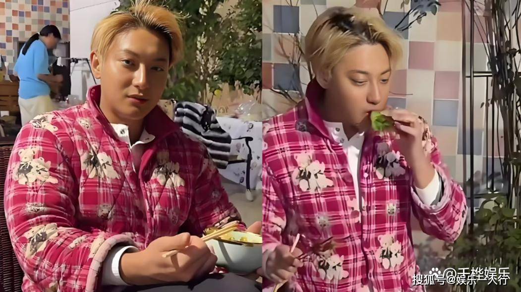 这件被全网戏称为“四川省服”的睡衣,其实来历特别简单。黄子韬临时跟徐艺洋回南充过年,没带厚衣服,徐艺洋就从舅舅那儿找了件旧棉袄给他套上。尺码明显偏小,穿在他身上肩膀那块绷得紧紧的,袖子还短一截。但黄子韬一点没嫌弃,就这么穿着上了饭桌。直播镜头怼着脸拍,他染着黄毛,裹着大红大蓝的花棉袄,一边撸串一边自己端出一盘刚炸好的饺子,蘸着四川特有的红油辣子,一口一个吃得特别香。徐艺洋在旁边说,这睡衣是舅舅的,黄子韬还笑着补充:“是舅舅的。”