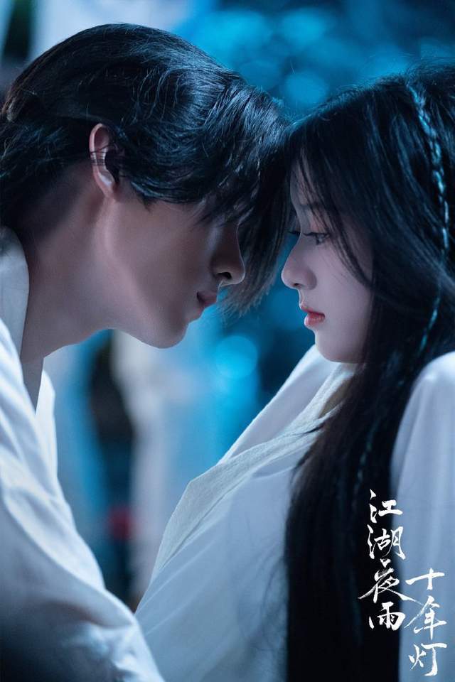 《江湖夜雨十年燈》劇中魔教少主「慕清晏」、正義俠女「蔡昭」在雪山中假扮夫妻,2人共同歷經生死之後情感逐漸升溫,在「慕清晏」步步緊逼之下,「蔡昭」在抗拒與心動間掙扎,之後小倆口上演椅子吻、地牢吻、溫泉壁咚…親密互動,將強制愛氛圍拉滿,彼此間的曖昧情愫更是極具性張力。