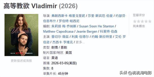这部改编自热门小说的心理惊悚限定剧,聚焦大学校园里失控的禁忌之恋,熟女教授与年轻男同事的情感拉扯预计会充满张力。