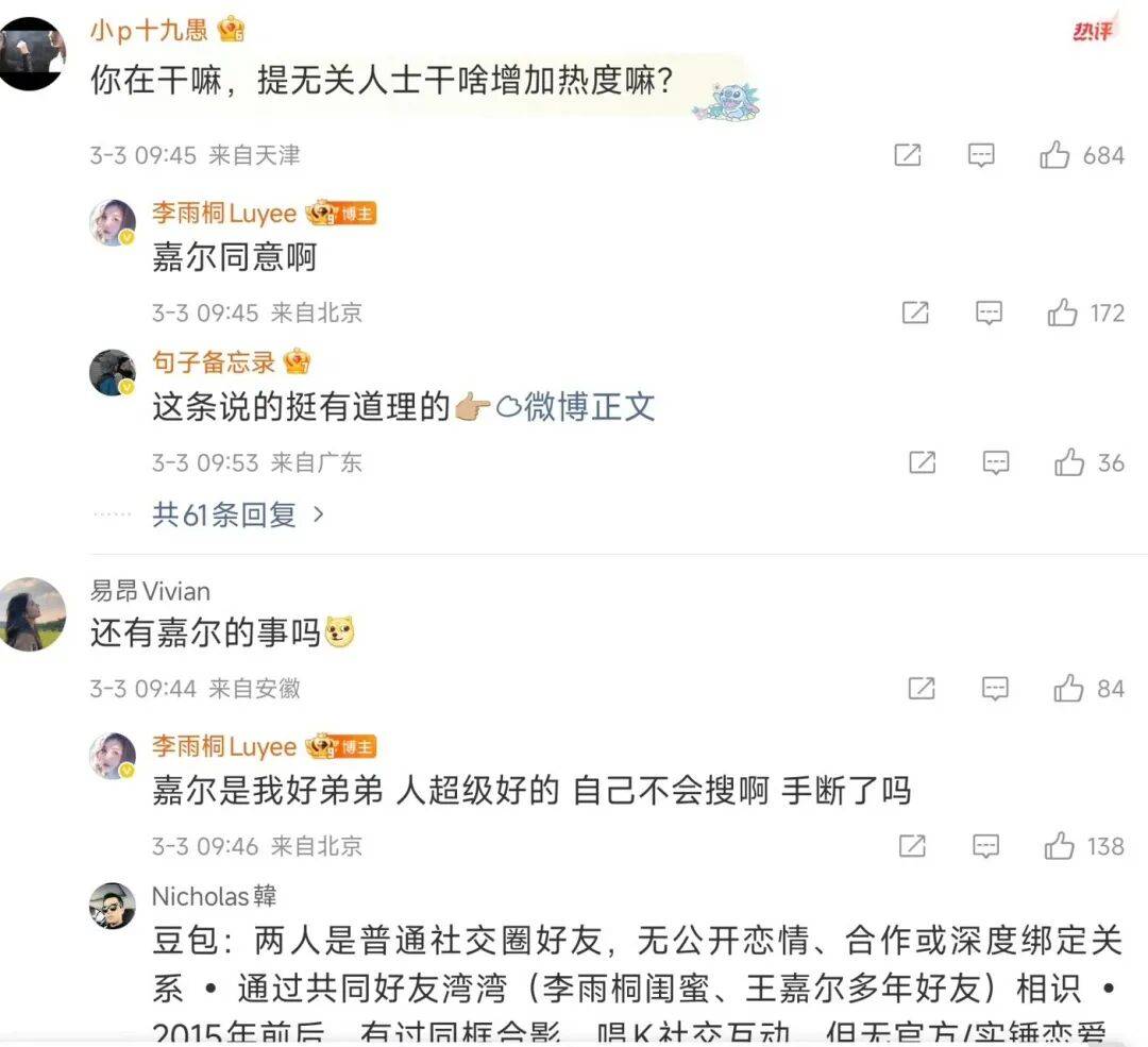 还有常年海外活动、几乎不掺和内娱纷争的王嘉尔。李雨桐晒出早年和王嘉尔的同框合照,还有唱k的视频,说帮王嘉尔打歌,还强调“嘉尔同意的”。