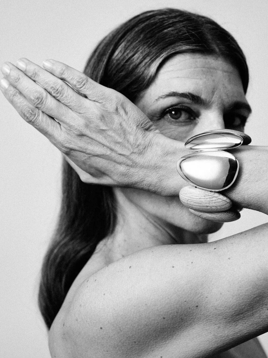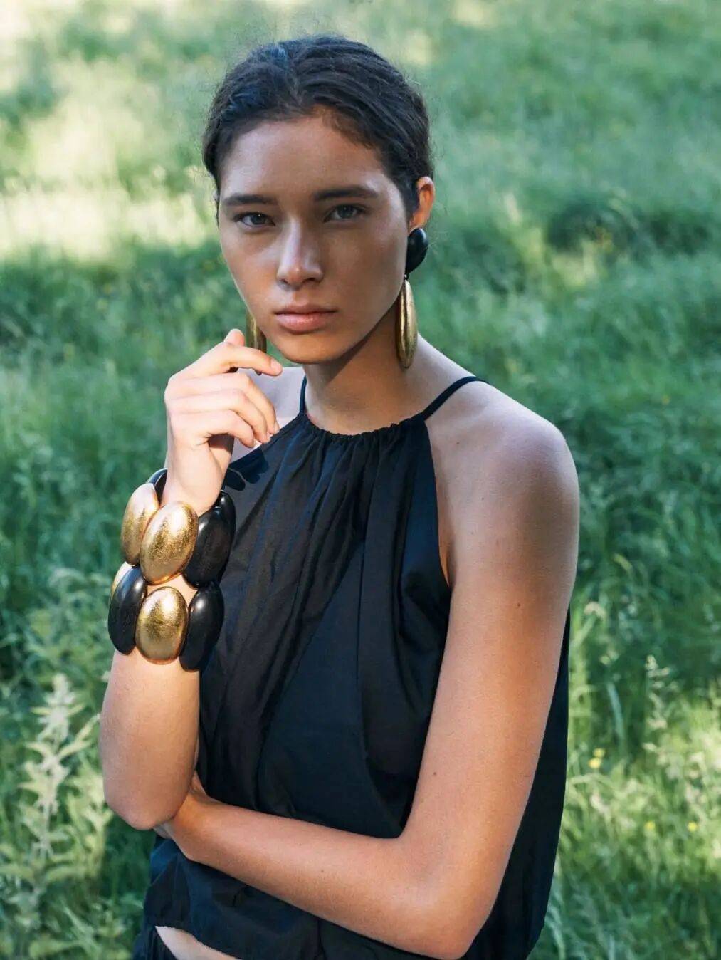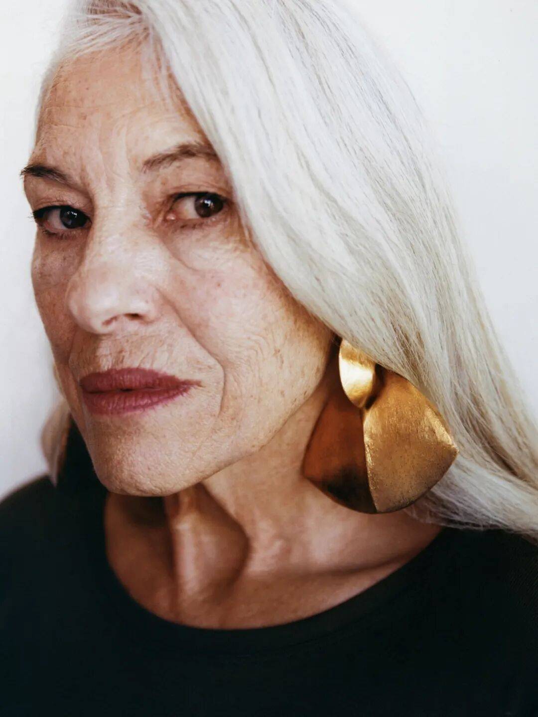 粗重的链条项链,宽得像盔甲一样的手镯,居然被她穿戴得稀松平常,年龄和阅历让她身上全是无所畏惧的自由和松弛。