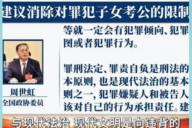 委员周世虹提议,消除对罪犯子女考公的限制。