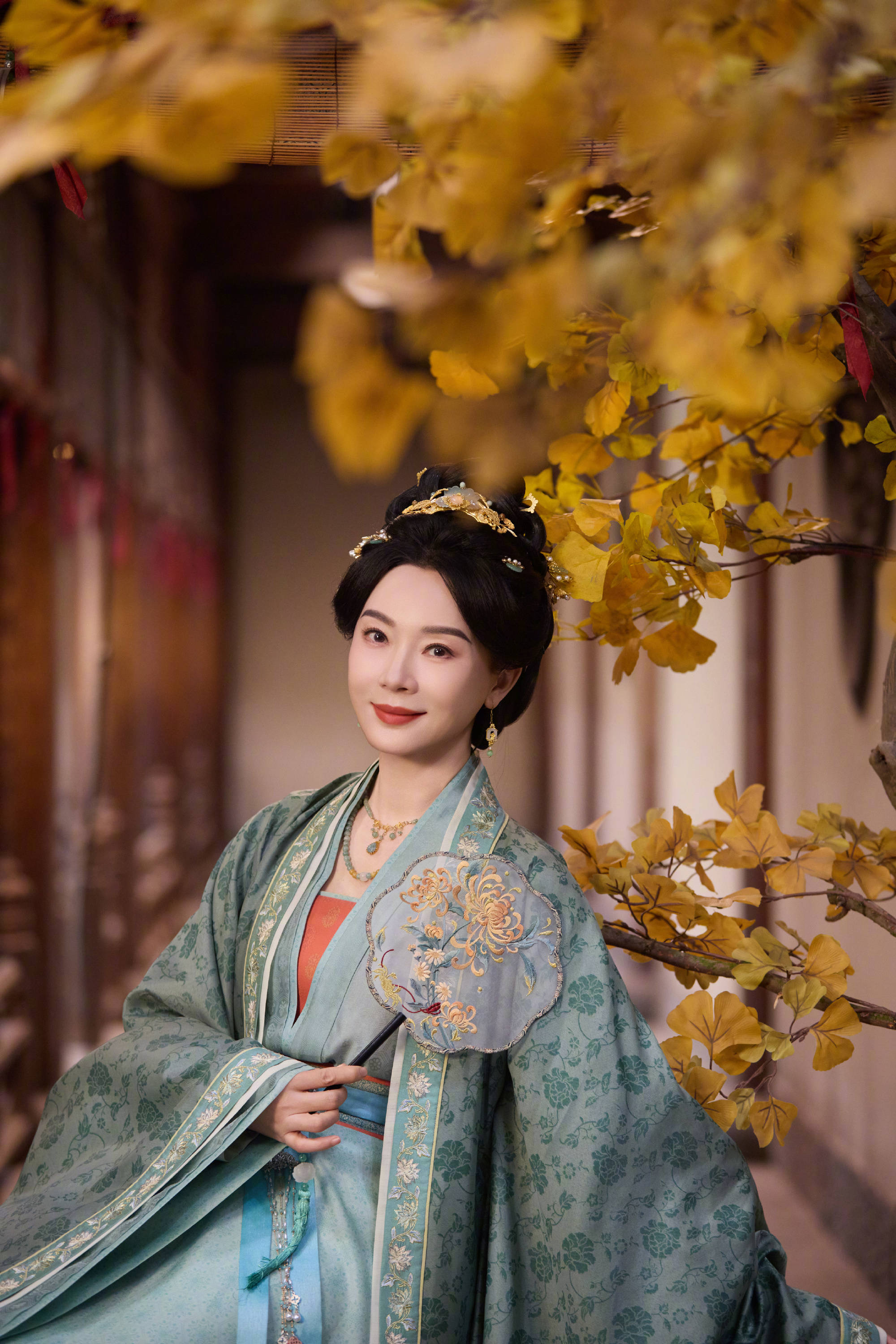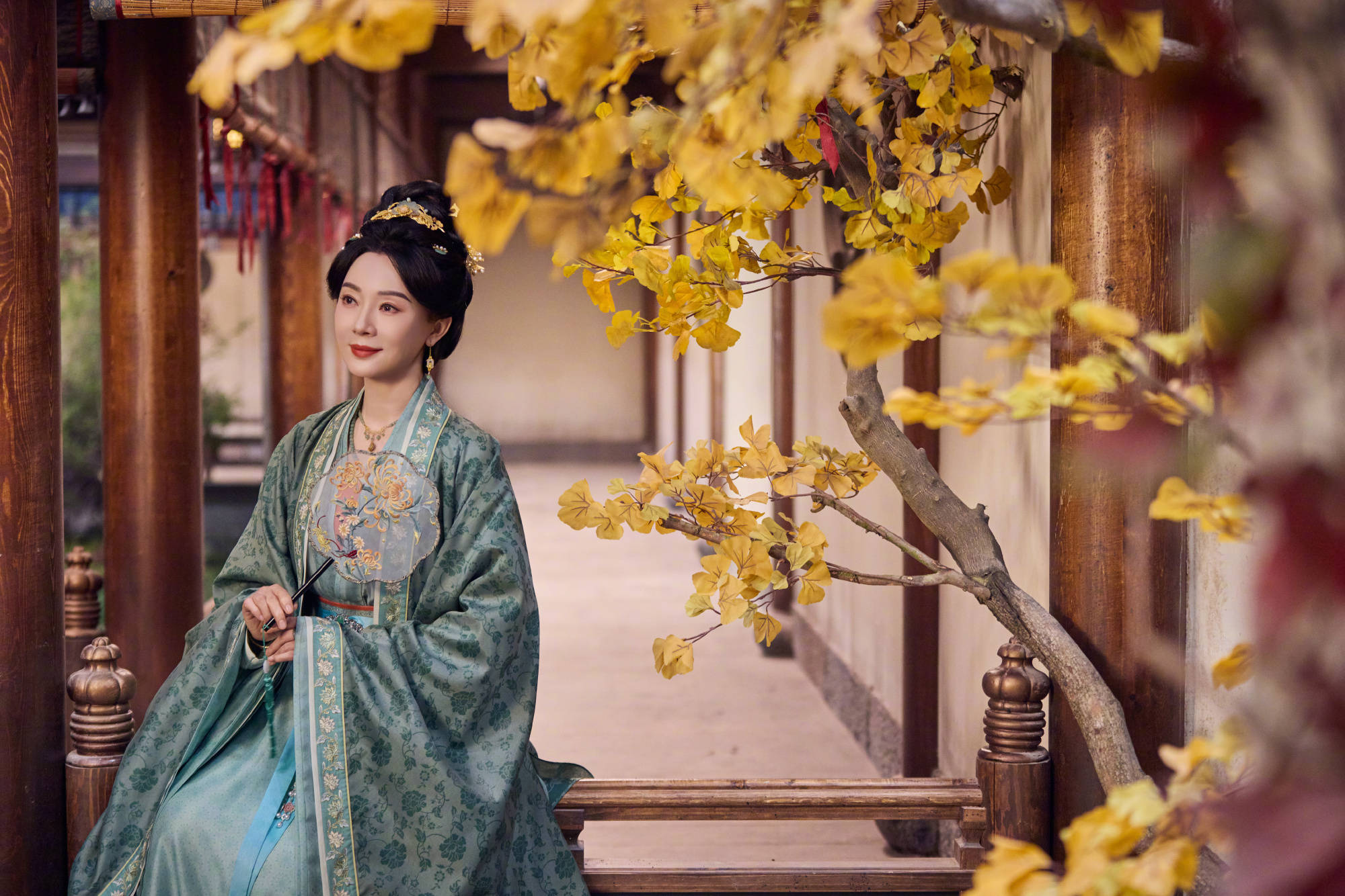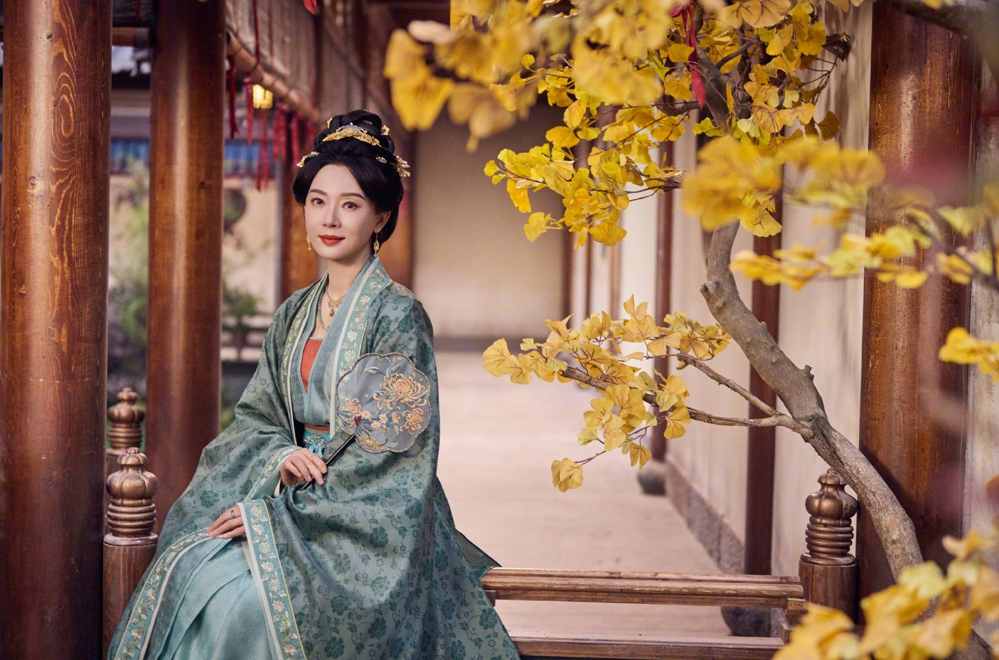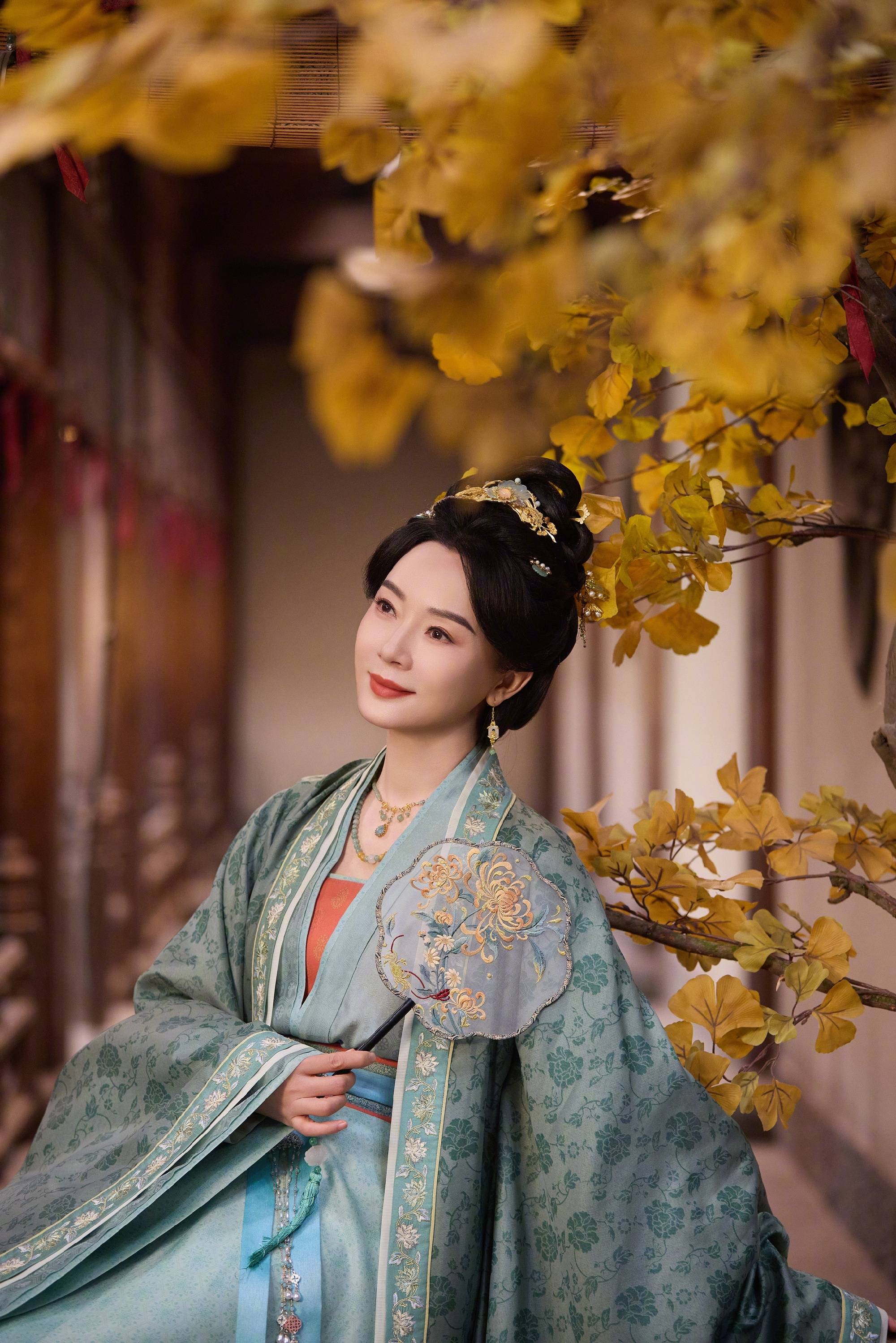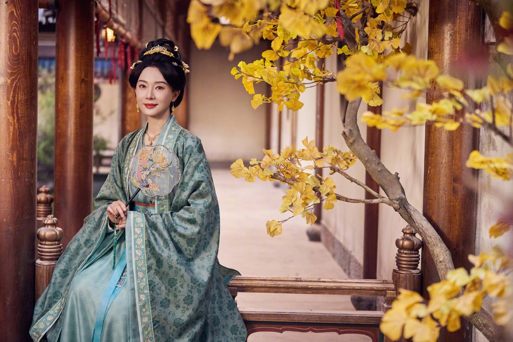陈数手持摇扇,气质温婉端庄。