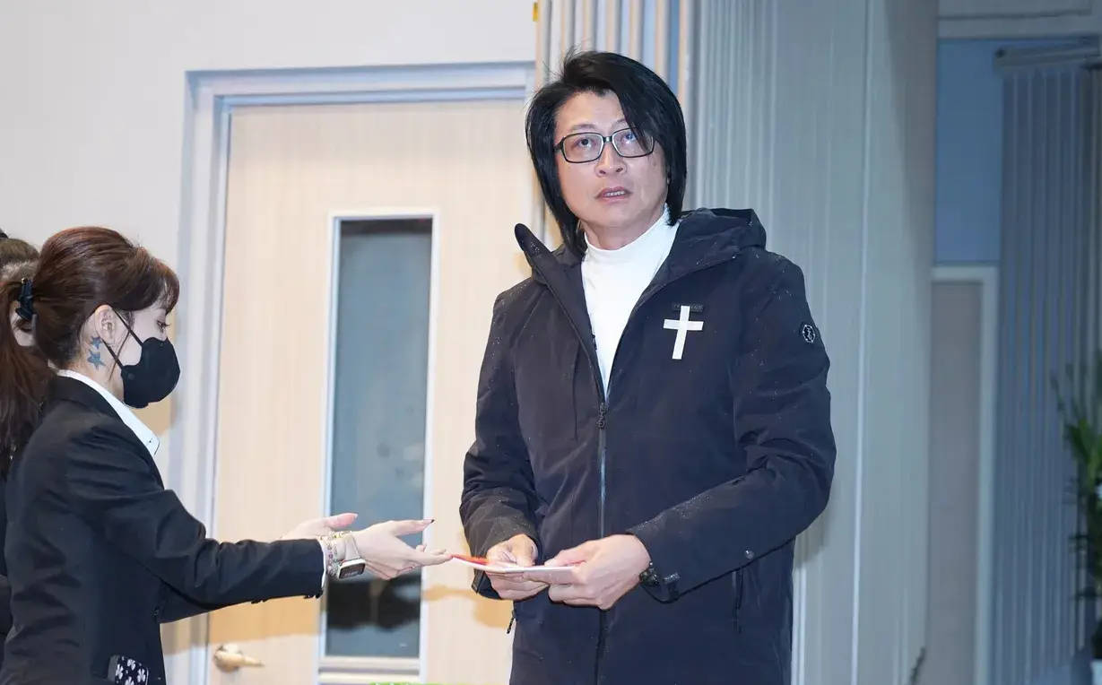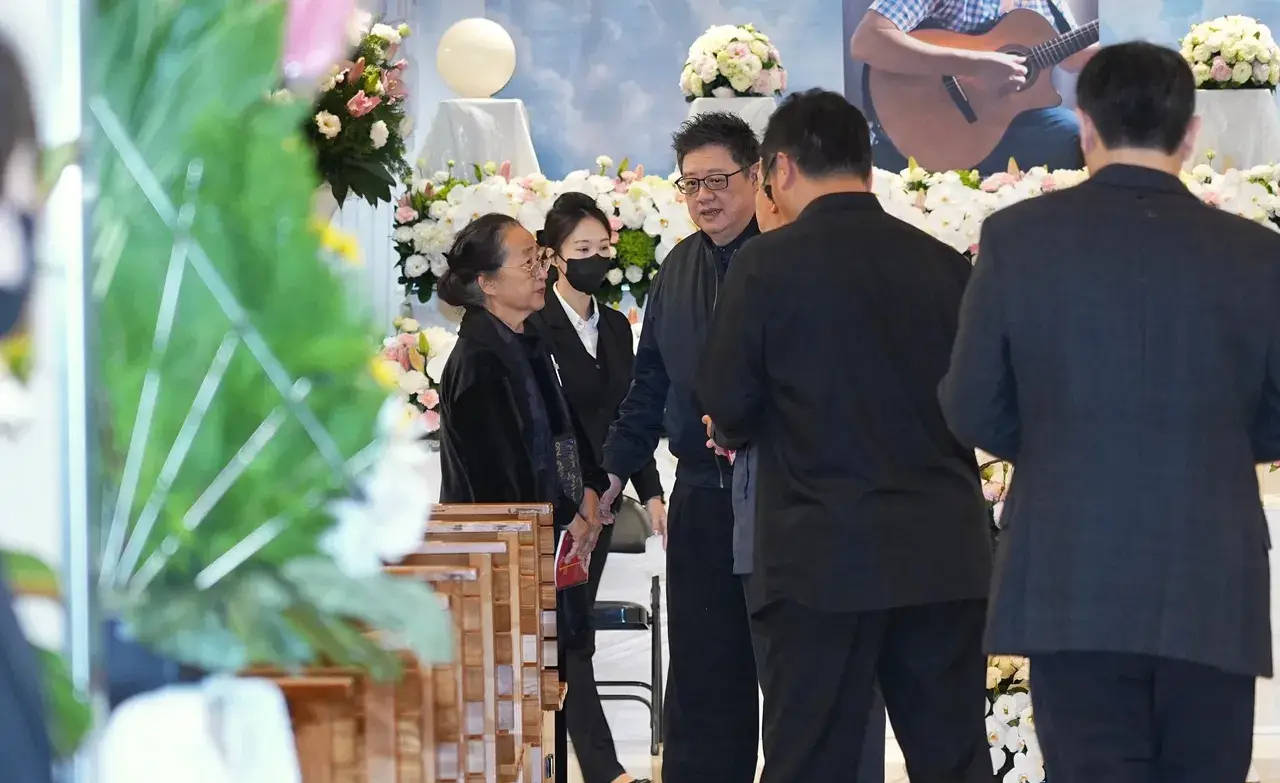 张宇现身告别式,双手合十致意。