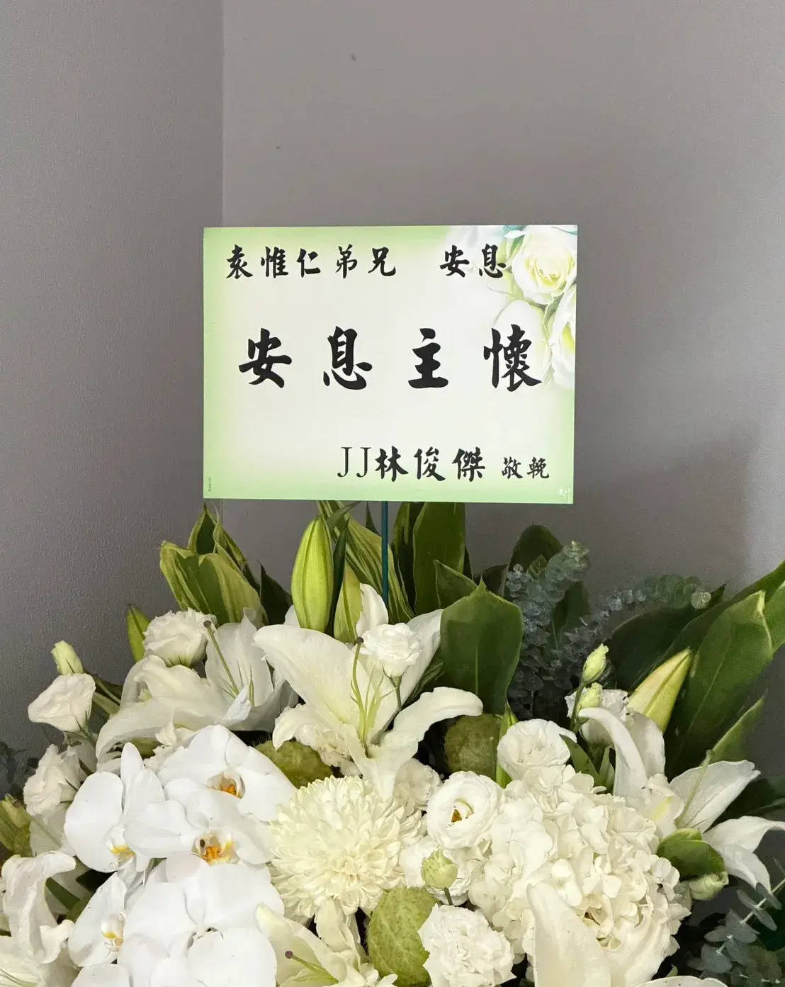林俊杰送花致敬,花牌特写。