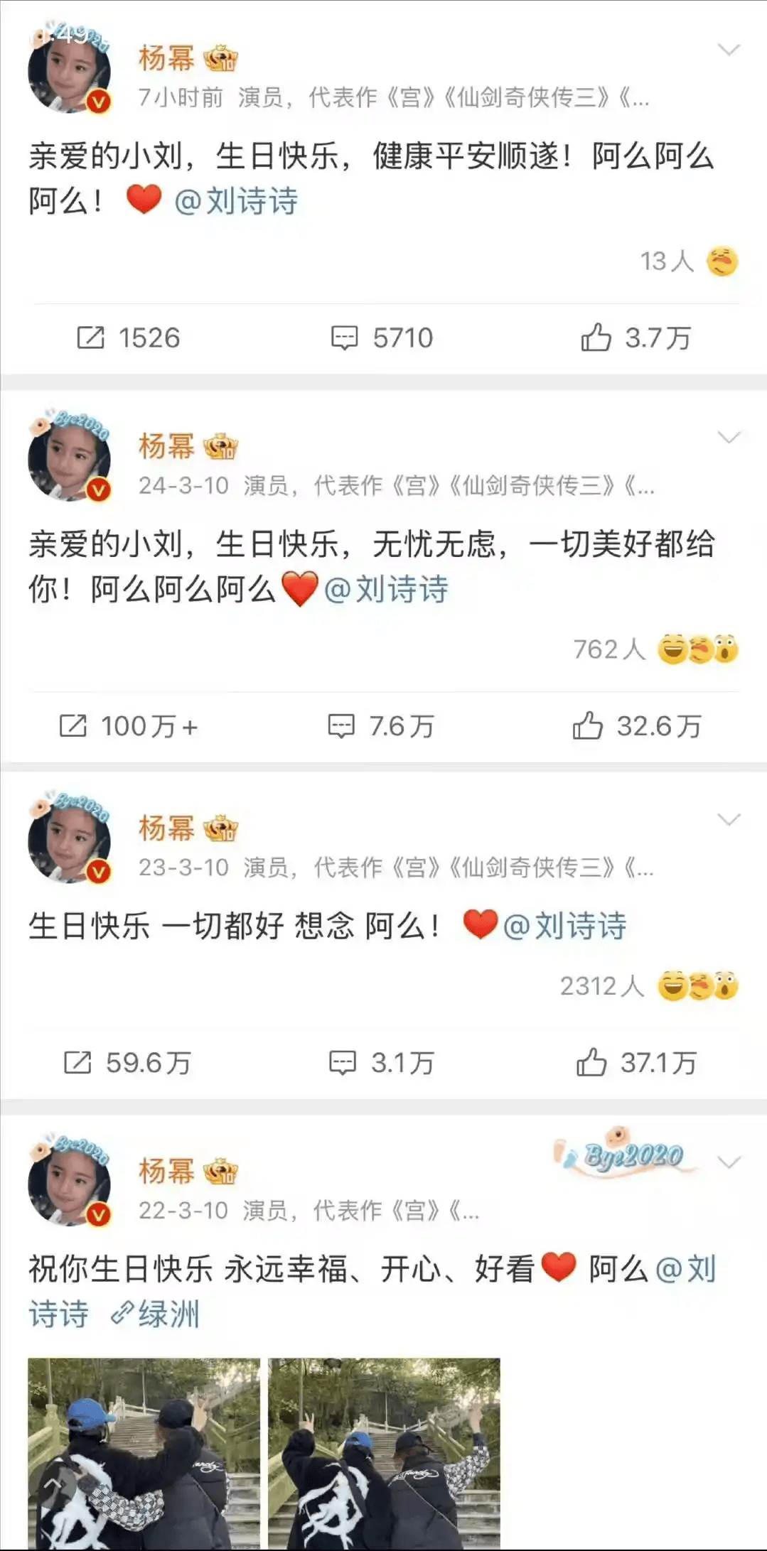 这也是杨幂连续第五年为刘诗诗庆生。