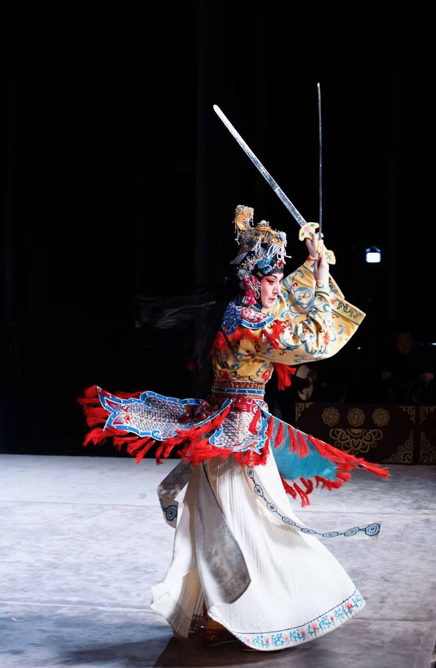 “在经典的规范之下,每个演员都会有自己对于角色的诠释。对于虞姬的神采节奏、舞剑的方式、与霸王项羽交流的方式我可能都会有自己的处理。尤其是那段剑舞,我跟很多老师都学过,我努力把每一位老师最好的部分融合在一起,完成这套剑舞。”