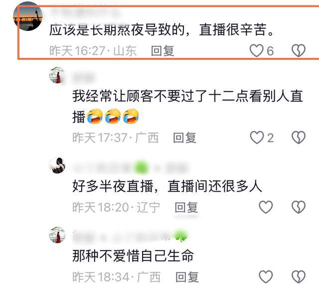 关于其去世原因,10年的粉丝表示是脑出血,而引发脑出血的原因主要是熬夜直播太操劳。这样的原因与开头那句话真的很映衬,一味地拼命赚钱,虽然钱赚到了,但健康也会因此而失去。