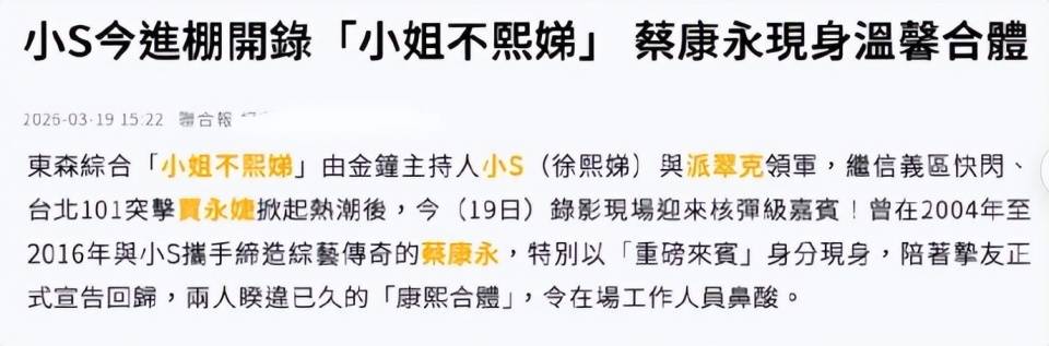 原创 小S复工就放大招!蔡康永来应援把“毒舌”收起来:先抱一下再说