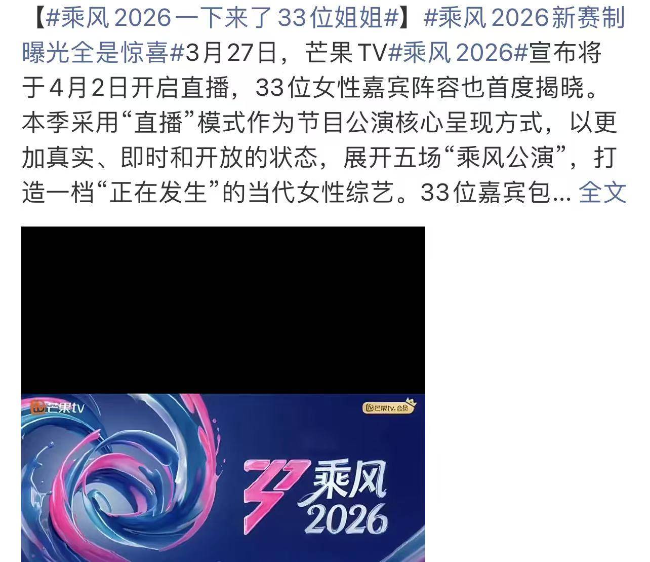 33位姐姐加盟乘风2026,跨界嘉宾扎堆,直播模式太新鲜