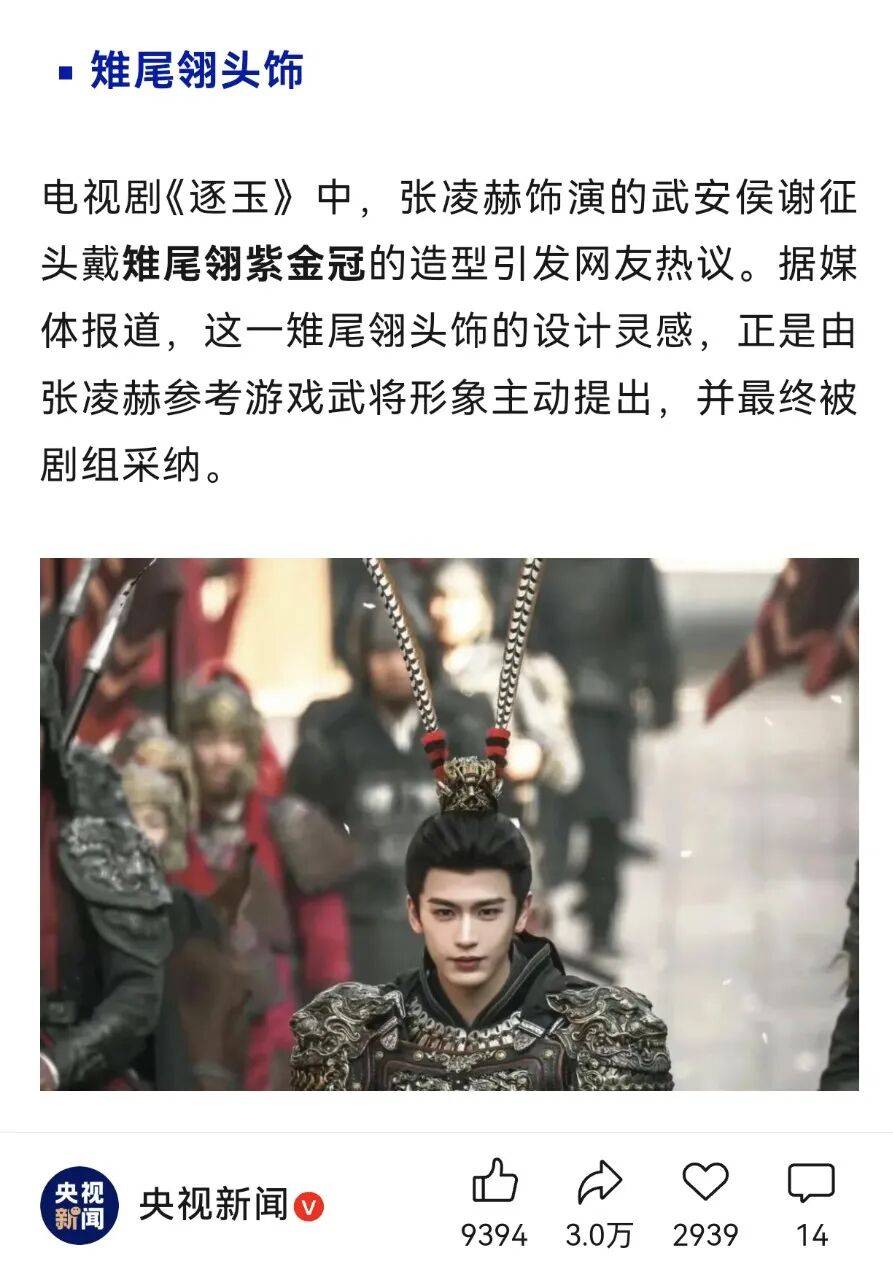 央视科普,张凌赫头顶的两根须须,学名为雉尾翎头饰,再现传统戏曲之美,不光是孙悟空可戴,也可用于塑造英武、勇猛、剽悍的角色形象。