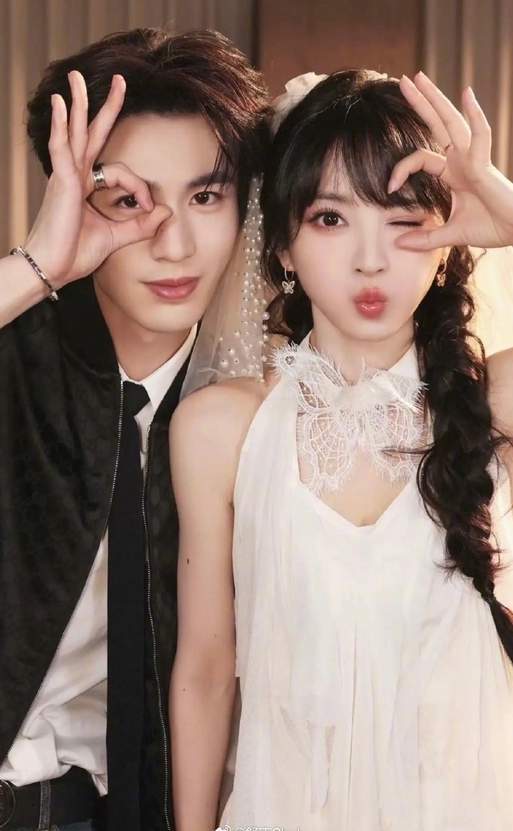 现场搭了花瓣雨,打了逆光,田曦薇戴着碎花王冠配蕾丝头纱,张凌赫一身黑西装。22厘米身高差,站一起就是画报。