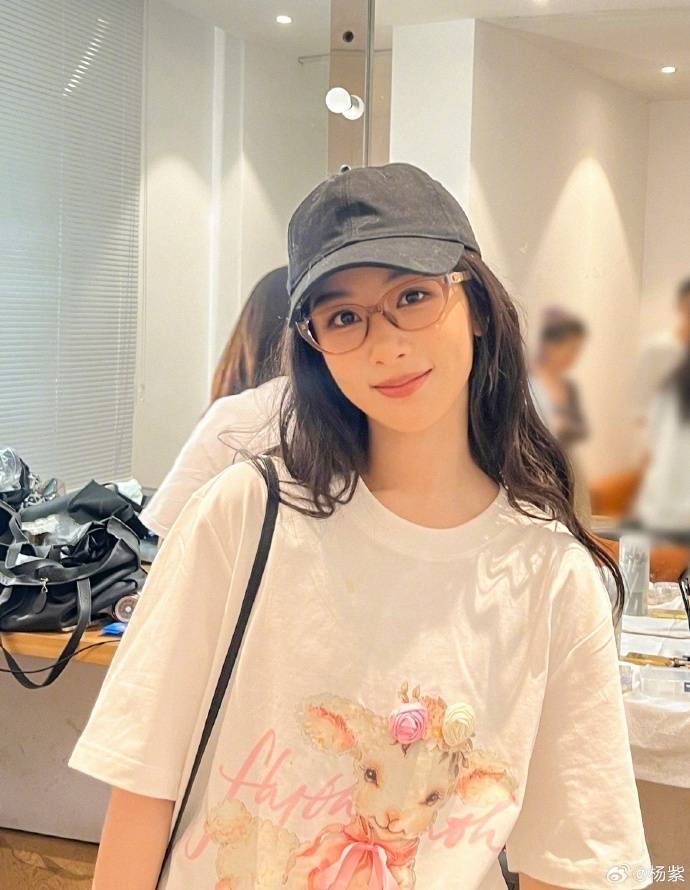 画面中的杨紫穿着白色的T恤,戴着棒球帽和大框眼镜,一头乌黑柔顺的长发披肩,气质一如既往的端庄优雅,整个人也散发着青春与活力了。她也对着镜头露出了甜美灿烂的笑容,在倾国倾城容颜的衬托之下,也如同初恋般让人心动了。