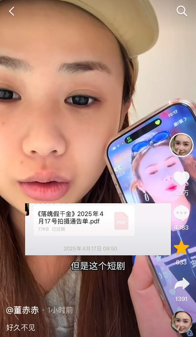 去年4月份,网红董赤赤接到了一个名为《落魄假千金》的剧本,拍摄结束后又相继更新了诸多视频。原本一帆风顺,哪曾想这部短剧的公司与这位导演发生了一些矛盾,而这位导演便将矛头指向了董赤赤。