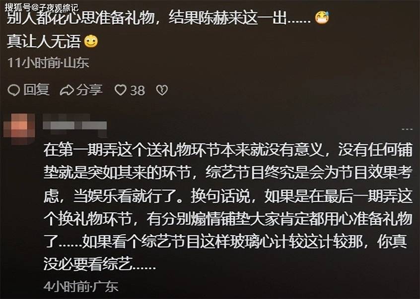 换个角度想想哈,如果陈赫的礼物是用心准备的,那节目效果会不会反倒普普通通,这种预期违背本来就是综艺的核心逻辑