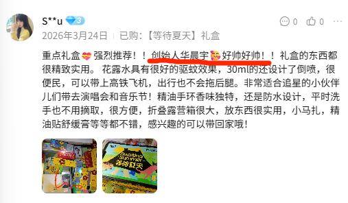 《消费者报道》记者浏览相关产品页面发现,大量买家评论来自华晨宇的粉丝。“联合创始人好帅”“华总……太帅了”“华晨宇出品,必是精心准备的”……粉丝们正以消费行为表达对偶像的支持。