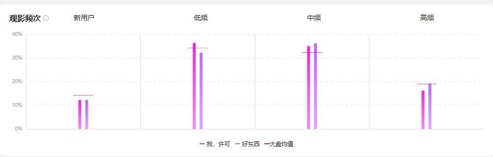 《我,许可》的购票观众中,低频观众的占比甚至比中频观众更有优势。在这一数据上,《我,许可》反而更接近《芭比》的受众分布。除了角色设定之外,演员的认知度或是导致受众变化的关键。