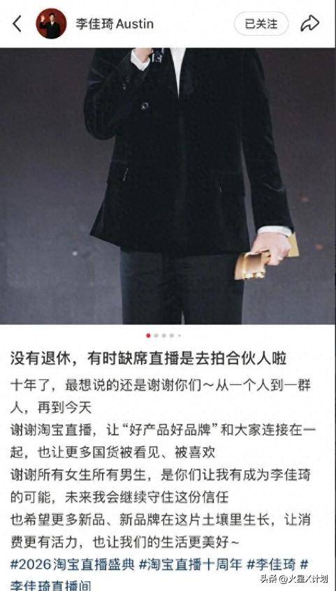 短短几句话,迅速点燃了网络舆论场,“李佳琦说可能缺席两个季度直播”的话题冲上热搜,关于他“退休”“退网”的猜测铺天盖地。