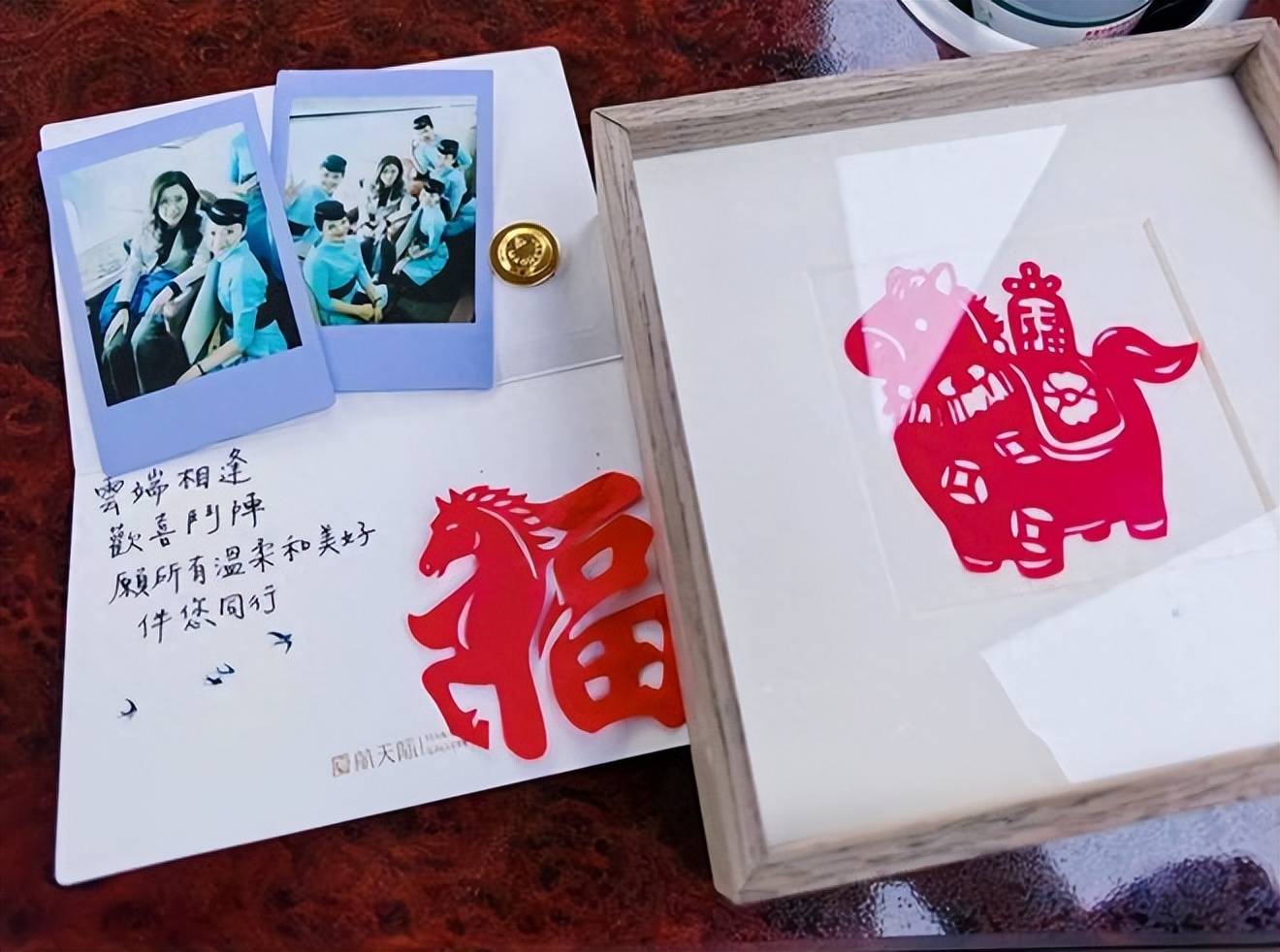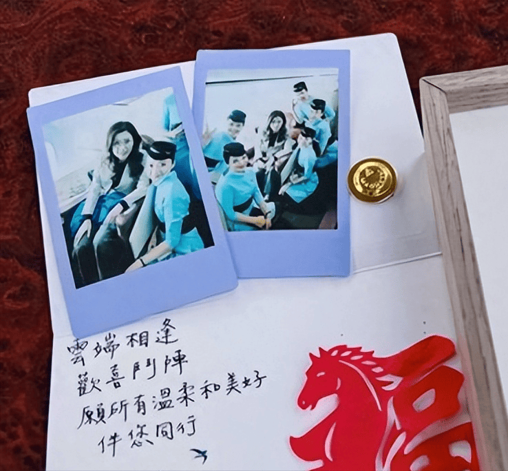 空乘也懂分寸,递上小卡片和剪纸,礼不重,心意到。