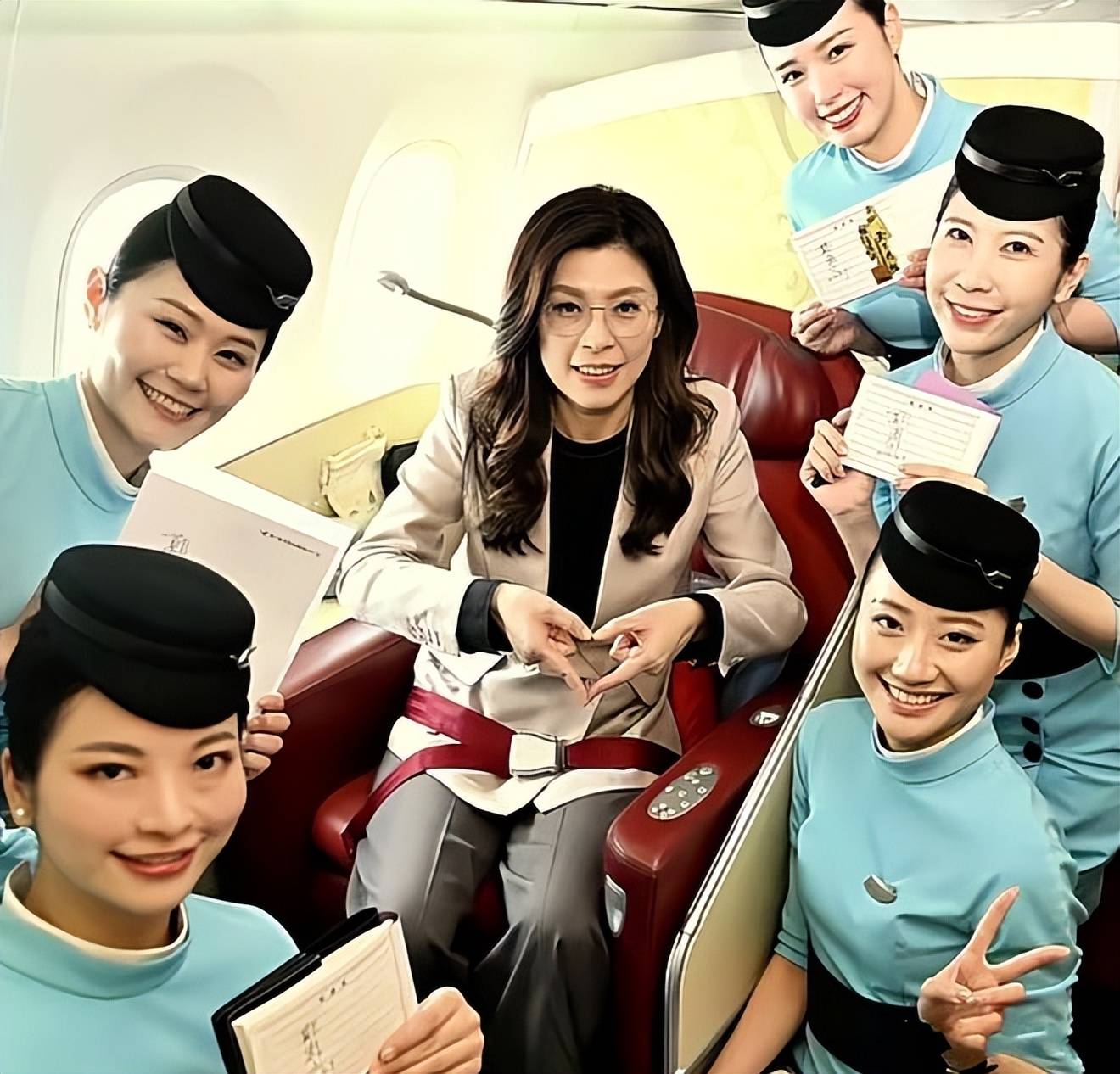 这件事能发酵,它赢在真实:机舱里那五位空乘的笑、卡片和剪纸的心意、郑丽文写字的耐心、还有安保站位带来的“稳”。