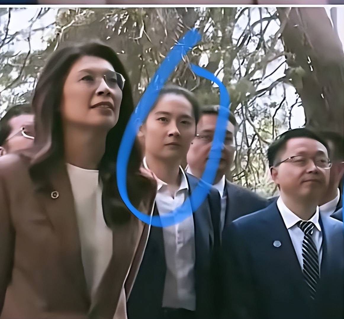 更有意思的是,镜头往旁边一挪,郑丽文身后那位女保镖没笑,眼神像把尺子,量着人群的距离。