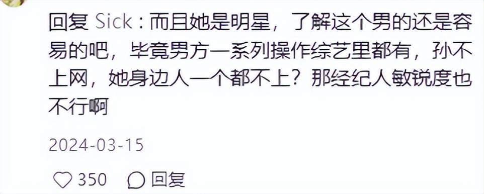 她的经纪人辟谣过,但辟谣得不是很强硬,网友都不接受,觉得是在糊弄大家。