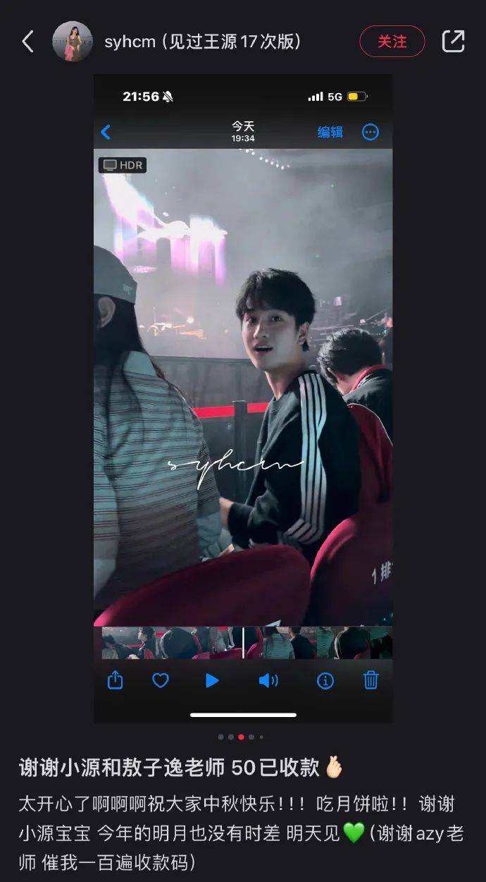 坐在前面的敖子逸了,真就乖乖扫了50给那位举牌子的粉丝。