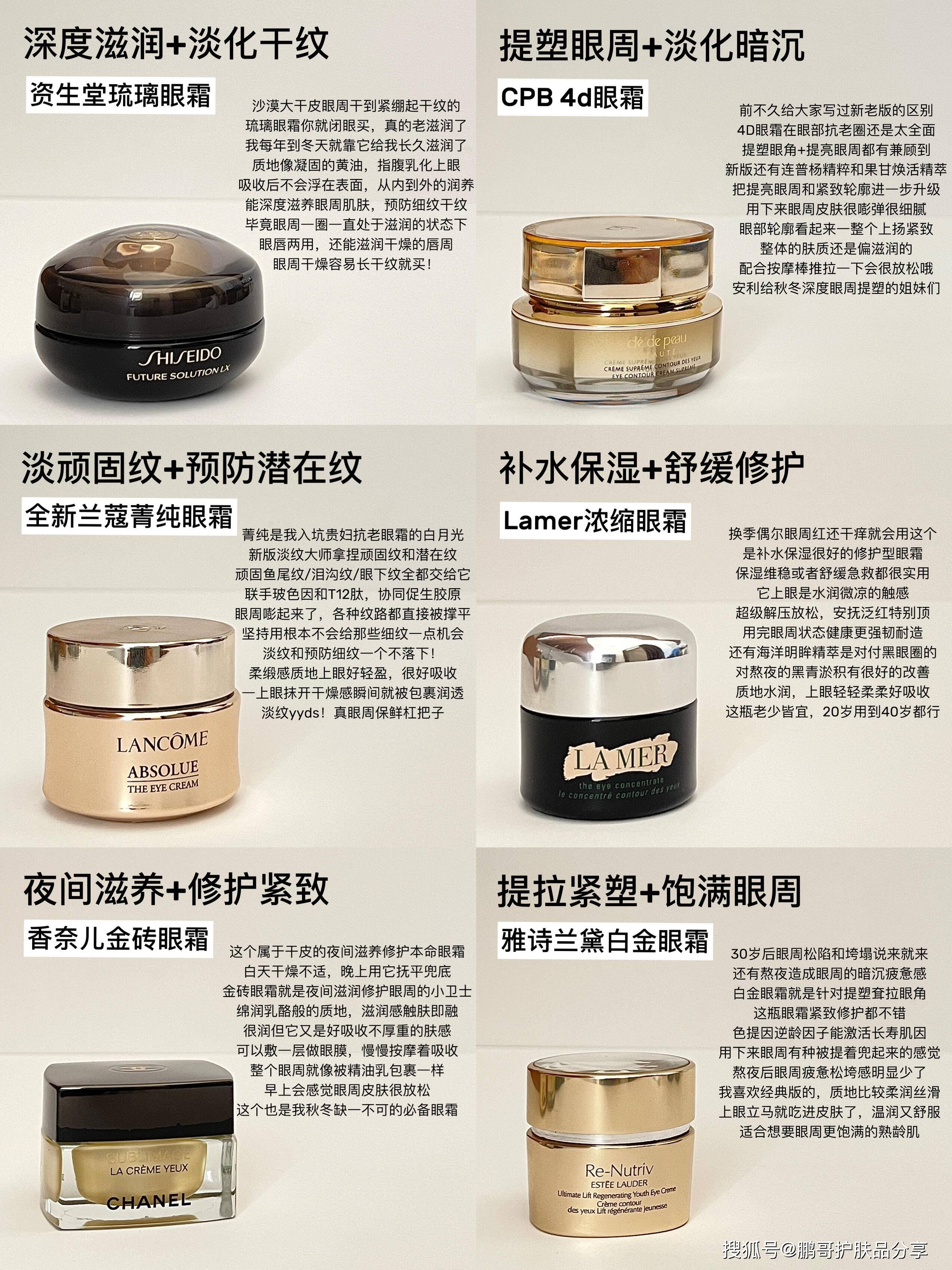所以我在眼霜上的投资从来不手软,几乎各个品牌的高端抗老眼霜我都有试过,也踩过雷教过智商税,大浪淘沙留下来的这些都是我觉得有效果的,我眼部的状态之所以一直保持的很好,也多亏这些功臣,这篇就给大家分享6款我觉得再贵也值得回购的贵妇眼霜,总结了一下自己的使用感受,有需要的可以认真做做功课。