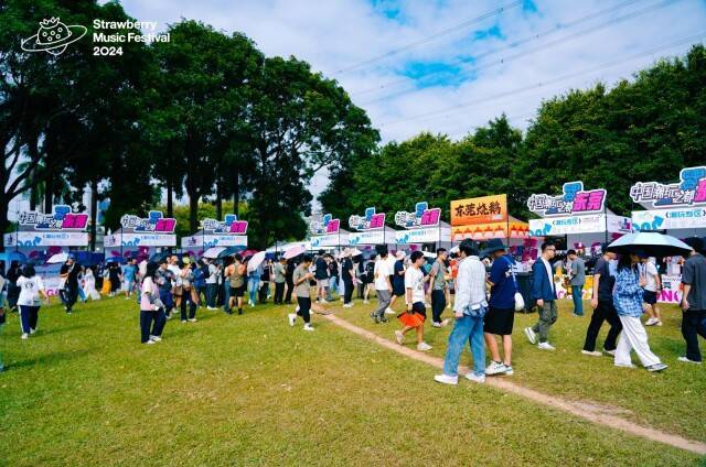 舞台周边,2024东莞草莓音乐节设置了多个互动体验区,包括潮流集市、美食区等,打造集音乐、文化、旅游、美食于一体的综合性音乐派对。