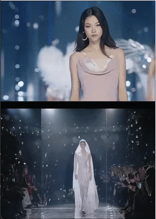 可以看小KK走成衣秀和高定秀的对比,高定秀就是她个人动作的0.7倍速。
