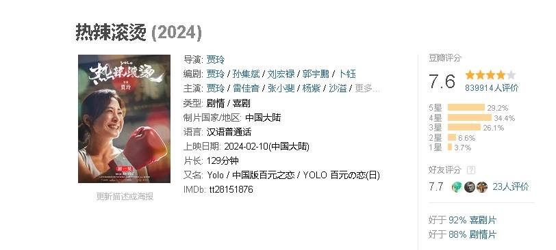 很多人对于贾玲自导自演的《热辣滚烫》零入围表示不理解,其实贾玲可以入围最佳女主角,和马丽一同争夺大奖,《热辣滚烫》豆瓣评分7.6分,而《第二十条》7.5分,所以为什么前者不能入围而后者入围,这个问题还得专家们来回答。