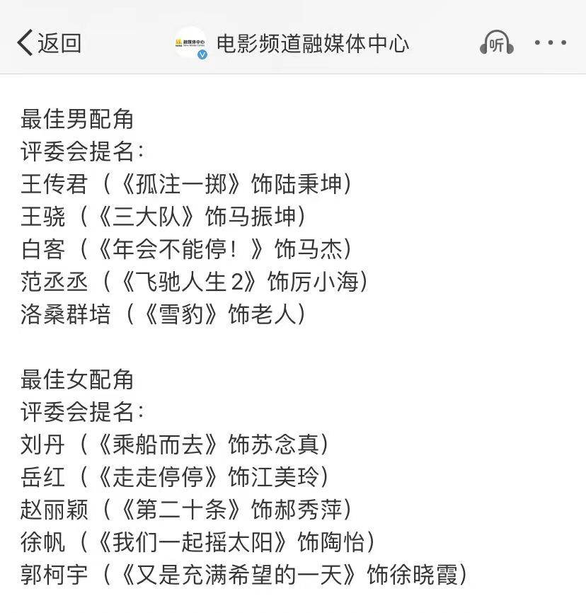最佳女配角获得者不会还是赵丽颖吧,因为她已经获得百花奖最佳女配角,这次可能会是岳红获得,因为她还凭借该片获得北京国际电影节最佳女配角奖。
