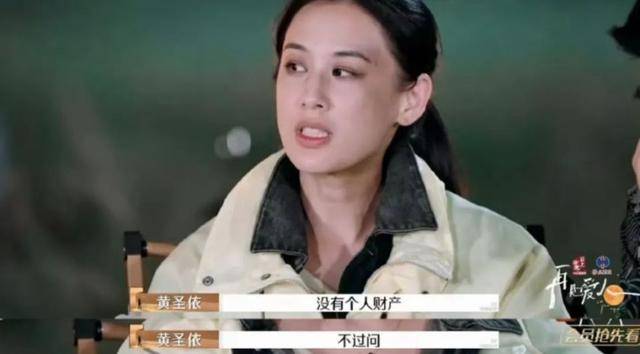 而黄圣依自己在节目中也坦言:我没有个人财产!自己的收入是直接划到公司账上的!